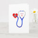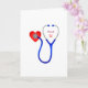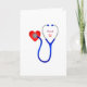 Tell a great doctor or nurse how much you appreciate them featuring a stethoscope with a red heart shaped chest piece with blue tubing.