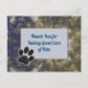 Do you have someone who cares for your pets when you are on vacation or someone who walks your dog daily? This appreciation postcard features a swirled blue and gold abstract pattern that is elegant and resembles a marble pattern. A solid light blue and gold rectangle is centered on the front of this postcard and provides the background for your words of appreciation. A black paw print is featured across the lower corner of the center solid rectangle. "Thank you for taking good care of Fido" can easily be personalized with your pet's name.