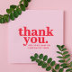 A simple "Thank you" quote art design in modern typography in red on a blush pink background. The perfect way to say thank you for business or personal use!