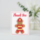 A flat thank you card for firefighters. The card shows a gingerbread firefighter in a red helmet and uniform. The back of the card has customizable text, where you can add your message.