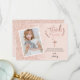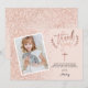 A modern, original and simple faux rose gold glitter ombre thank you first communion with cross invitation on a fully customizable blush pink color background. Upload your photo.