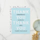 These 5" x 7" flat graduation thank you cards feature a textured arctic blue background with placeholder for graduate name, graduation year, in black and school with the words, "Thank You, Thank You," in ivory.