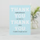 These 5" x 7" flat graduation thank you cards feature a textured arctic blue background with placeholder for graduate name, graduation year, in black and school with the words, "Thank You, Thank You," in ivory.