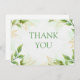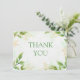 Thank You flat note card is shown in a lovely watercolor floral leaves print. Text color Green Envelopes included