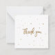 This is a "Thank you" flat small note card in a stylish cozy way: Gold glitter text and small glitters around in a beautiful dance.
