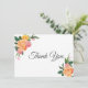 Thank You flat note card is shown in a lovely floral peonies print. Text color Slate