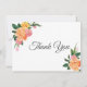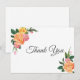Thank You flat note card is shown in a lovely floral peonies print. Text color Slate