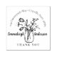 Adorable mason jar filled with flowers centered. Templates for mailing address in curved text above, names on either side of mason jar, and a "Thank You" text underneath design. Perfect for small business thank you stamp.