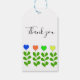 This charming tag expresses gratitude through its colorful floral design. Featuring vibrant hearts atop green stems, it beautifully facilitates a heartfelt message for any occasion. Perfect for gifts or appreciation notes, this tag combines elegance and warmth.