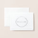 Thank You Note Card is shown in white with a sample name and border trim and accent print in real silver foil.
