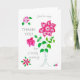 A pretty 'Thank You for a Lovely Evening' Card, with pink flowers, designed to look like needlework, from a handpainted paper collage by Judy Adamson
