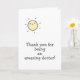 NewParkLane - Doctor Thank You Card, featuring a cute little sun cartoon and text: 'Thank you for being an amazing doctor!!' in a fun script typography. Add your own message on the inside for a personalized design.