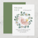 Show your appreciation for your parents with this beautiful watercolor thank you card. The design features the hands of a mother and child, surrounded by a wreath of greenery leaves and delicate white and yellow flowers. The heartfelt message reads, “Thank you for being my rock and guiding me through life’s ups and downs.” This card is the perfect way to express your gratitude and love for all that your parents have done for you.
