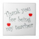 Thank a special teacher with this beautiful and unique tile which says "Thank you for being my teacher". Complete with small apples to add a burst of red color. This gift is a unique and inexpensive way to tell a teacher that they are making a difference. Perfect for holiday, end of the year, or appreciation gifts.