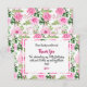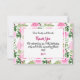 Beautiful Pink Watercolor Roses and bright greenery pattern framing the thank you card details. The back of card features the same pattern. Update and personalize with you custom thank you message for your guests