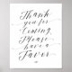 Elegant Calligraphy Script Wedding Sign - Thank you for coming, please have a favor. Sign in beautiful flowing fancy letters and your personalized text. A stylish yet simple formal design in black and white or any background color you choose. Just click the customize further link, shown under the text personalization area on the right, and choose your custom color background. This sign poster template makes it fast and easy to create stunning additions to your wedding decor. Signs can be enlarged, there are many sizes to choose from, as well as options for custom framing and matting. wedding custom signage.