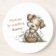 Pleased with the overall quality of this type of coaster. I bought a set of these and each one was packaged carefully in bubble wrap to protect from breakage. The coasters are very classy looking and fun to use. I would recommend to anyone. Printing is less bright than on other products such as say, magnets or mugs, but that's to be expected given that they are printed on sandstone. Somewhat dull, but true to how the product is represented on the Zazzle website. I am pleased with the quality and would order again. Would make a great gift.
