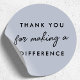 A simple "Thank you for Making a Difference" quote art design in modern and handwritten script typography on a dusky muted pastel blue background. The perfect way to say thanks to that special someone, here are some individuals you could share your gratitude with: teacher, mentor, coach, instructor, advisor, doctor, nurse, midwife, coworker, colleague, family relative, friend, neighbour, nanny, customer, client, business manager, wedding host organizer, carer, social worker, housekeeper, cleaner, gardener, hairdresser, babysitter, dog walker, pet sitter, mailman, charity fundraiser, accountant, PA, secretary, surgeon, paramedic, physio, counsellor, therapist, and so much more!
