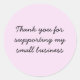 A simple pastel pink sticker to thank customers for supporting your small business. A cute girlie design for small businesses.