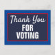 Thank You for Voting design. With many United States citizens using mail-in voting during the pandemic, and others taking advantage of early in-person voting, we have one election day but many voting days. Thank your neighbors for voting with this clear, concise, and straightforward design in customizable colors. Design description: A dark blue rectangle with a white border takes up most of the design space. In the middle of the rectangle are the words, "Thank you for voting" in white all-caps sans serif font. Outside the rectangle is a medium blue border for contrast. The colors are customizable.
