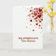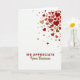 This greeting card expresses gratitude with warmth and thoughtful design. The background is bright white, allowing a flowing cascade of hearts to stand out along the upper and right edges. The hearts vary in size and appear in rich reds, soft pinks, and golden-brown tones, creating a sense of movement and generosity. At the lower center, the message “WE APPRECIATE” appears in bold crimson lettering that feels confident and sincere. Beneath it, “Your Business” is written in smooth golden-brown script, adding a personal, refined touch. The balance of open space, warm colors, and mixed lettering makes this card a meaningful way to say thank you on Valentine’s Day or any occasion.