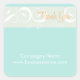 Customizable compagny square sticker with pale blue background and a gray decorative band (Thank You is not customizable). You can easily change color background (here mint color) and text (font, size, color and position) by clicking the customize button. Other models are available.