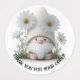 The product is very cute and great for my business. I love the gnome and the flowers. The printing turned out really nice. A very sturdy sticker.