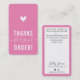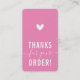 THANK YOU FOR YOUR ORDER insert modern CANDY PINK