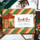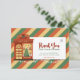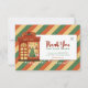 Retro Vintage "Thank you for your order" christmas Thank you card template for an order insert fitting for a small e-commerce business. Add your logo, contact info and optional discount details. This design features a small shop, christmas string lights and a striped green, red and yellow background.