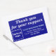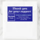 Customizable sticker with message Thank you for your support. Sticker to appreciate the support of your customers or clients. You can also use it as marketing material to advertise your business and to promote your brand name or build brand name awareness. Designs are light blue and white texts on blue background and rectangle shape. To customize this sticker, upload your business logo, type your business or company name, address and phone number. After uploading logo and typing texts, please check the appearance. If the appearance is pleasing to you, you can place your order now. If you need to resize and move the logo and texts to fit on this sticker, please change in the design tool. You can also make other changes according to the appearance that you prefer in the design tool such as changing the background color, font color and font style.