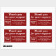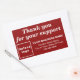 Thank You For Your Support on Red Rectangular Sticker