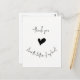 Cute and simple thank you postcard featuring hand lettered typography that says 'thank you from the bottom of my heart' with cute black heart in middle of the card.