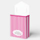 The background is a simple stripes pattern with fuchsia and white vertical stripes for an all-over geometric print. The design is suitable for all occasions, all ages, and all genders. Use these little boxes to wrap small gifts or party favors for birthdays, anniversaries, graduations, showers, and more.