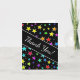 This fun, multicolored thank-you card design features a pattern of star shapes of various sizes and colored a variety of colors on a black background. The front also features the message "Thank You!", along with a personalized message of gratitude on the inside. It could be used to offer thanks to somebody who has done something special.