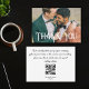 two sided card,on the back side thank you message with qr code to view wedding photos.