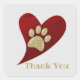 Thank You Gold Paw Print Red Heart Appreciation Square Sticker