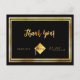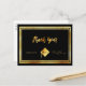 A thank you card for the graduate. A black background color and a faux gold frame. On front a hand lettered style script and the text: Thank You! Graduate year and a graduation cap, hat.