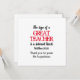 This is a modern THANK YOU CARD with an inspirational message based on the Bible Scripture verse from Matthew 20:26, which says THE SIGN OF A GREAT TEACHER IS A SERVANT HEART, with additional text at the bottom that says THANK YOU (plus placeholder name). The text for GREAT TEACHER and the THANK YOU message are both CUSTOMIZABLE, so you can change the role (eg. GREAT MENTOR) and the greeting/name as required. The reverse has been left blank for you to add your personal message. This would make a great TEACHER APPRECIATION greeting card for your favorite teacher, either at Christmas or at end-of-year to say Thank You. Part of the TEACHER APPRECIATION Collection by Berean Designs.