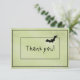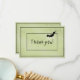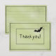 Customize your holiday Halloween thank you cards with this digital art with a black bat flying in the upper right corner on a textured green grunge background with narrow black frames. The words, "Thank you!" are in the center with a text template so you can easily change it to your name, initial, or monogram. A great idea for your Halloween party. The back has the same green background, and is lined for a writing area.