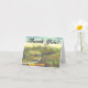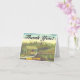 This vintage style thank you greeting card design features the message "Thank You!" in script like text, along with a depiction of a rustic, old fashioned sawmill. The back features a message that can be personalized. A card like this might be used to send thanks to somebody who has done something special.