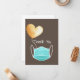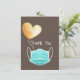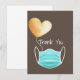 A simple heartfelt "thank you" for front line workers, essential employees, first responders, friends, family and other community members that may have been of help to you and yours during the Coronavirus pandemic, or other medical emergencies. Features blue face mask with watercolor heart balloon on brown background.
