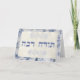 On a background of textured papers in shades of blue and white are shown the Hebrew letters for the words, "todah rabah", or "thank you".