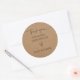 The sticker is made on wonderful paper and had no problem sticking to the bag that I purchased to put it on. I wanted to find a design that would be cute for the bride and groom and this one fit the bill as it has cute "bees" buzzing around and the wedding was taking place in a town called "Bee Cave". The packaging was great and protected the stickers. The website is easy to navigate and there are so many color choices. I had no problem finding a color that the bride was using on everything else selected. The design was adorable and there were many to choose from. You can make the figure as larger or smaller and you can place the photo and writting whereever you want to in the sticker. The printing is fabulous..better than expected.