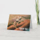 Color photograph, slightly digitized with texture to resemble a painting. A lizard lounges on a stick in an aquarium under a heat lamp. Shown as a thank you card for the reptile lover, customize as needed to suit any occasion