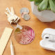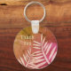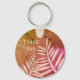 This thank you keychain features pale pink plant leaf silhouettes that reach up from the bottom toward the words "thank you" written against a marbled pink and orange background. "Thank you" can easily and quickly be customized to suit your needs.