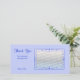 A light blue thank-you flat photocard with swirls and hearts around the frame. Customizable text reads: Thank You - Your personal message here, Dan & Sue. Customize the text to your preferences and add a photo!