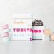A fun way to say thanks! This thank you design is done in a variety of colors (like pink, blue and green) and a variety of languages (like English, French and Spanish)
