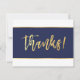 THANK YOU modern dark navy blue gold writing Card