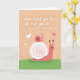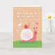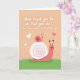 Designed with a soft pastel illustration, the card shows two stylized snail-like characters on a narrow strip of bright green ground under a peach-toned sky. The larger figure is a gentle coral color with a white spiral shell, carrying a smaller, cheerful companion on its back as they lean close in a caring, affectionate way ❤️. Both have simple dark eyes, small smiles, and curved antennae that add a light, friendly charm. Across the upper area, a rounded white message reads, “Mom thank you for all that you do !! I don't know what I'd do without you!” with the text centered and easy to spot against the warm background. A few small hearts in white and soft pink float around the words, echoing the tender connection between the two characters 🌼. The colors stay calm and cozy, with smooth shapes and a hint of texture that keeps the scene from feeling flat. The peach sky is sprinkled with tiny heart shapes above the coral-and-white pair.