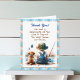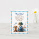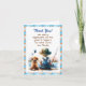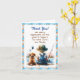 Thank you cards for baby shower gifts or new baby presents. An adorable sweet little ai watercolor illustration of a baby boy fishing with a puppy dog. The colors of this card include blue and orange.